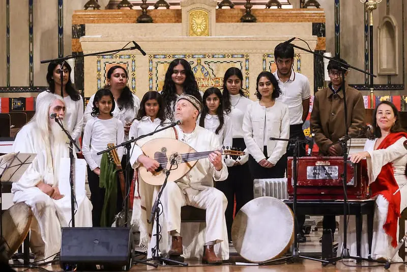 The Ensemble’s music stirred the soul, carrying the audience on a journey from ancient grieving and the Psalms to Sufi Master Rumi’s mystical transition from darkness to light, presented by a modern Sufi master and his son. A female dervish (derva) spun a cathedral of diverse individuals into a weave of spirituality that carried everyone through a Buddhist chant of compassion, a Christian prayer of forgiveness and a heart-breaking lament from the Armenian Tradition.